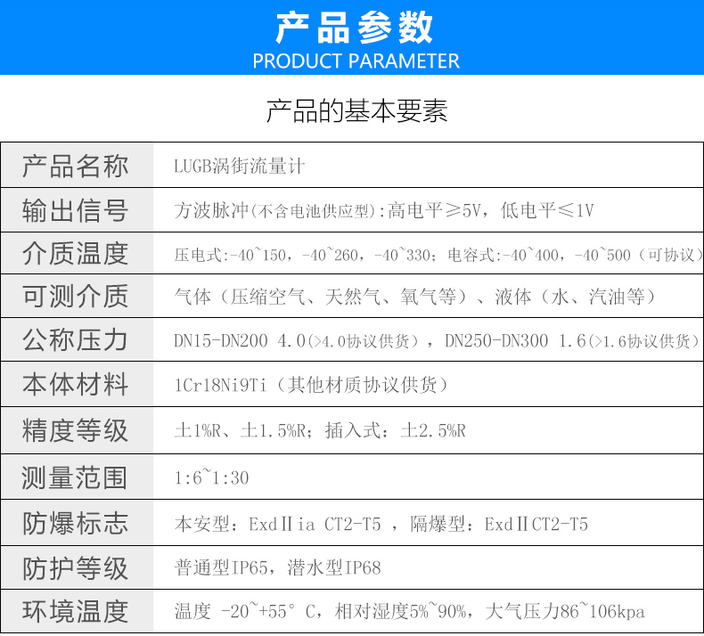 LUGB/E型渦街流量儀表廣泛適用于石油、化工、冶金、熱力、紡織、造紙等行業對過熱蒸汽、飽和蒸汽、壓縮空氣和一般氣體(氧氣、氮氣氫氣、天然氣、煤氣等)的計量和控制。